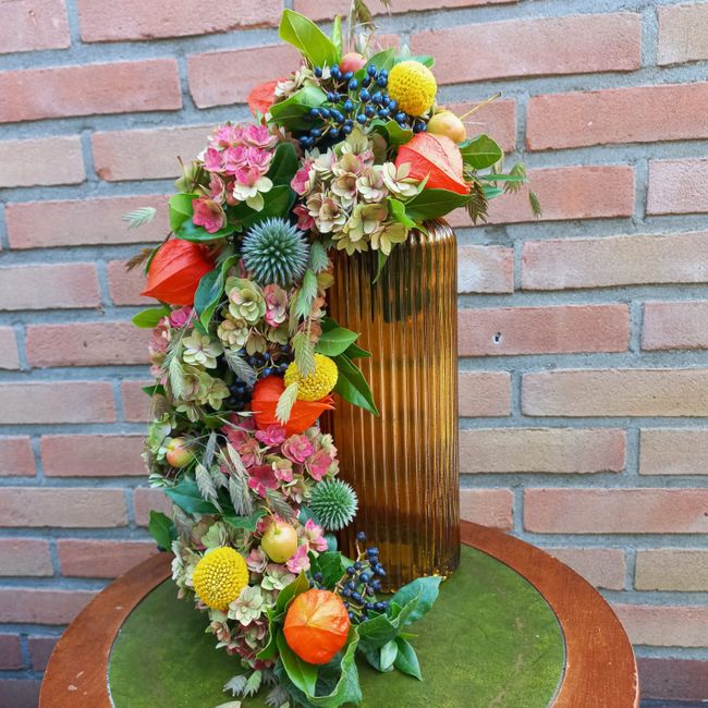 Ook dit jaar organiseert de tuinvereniging Groei&Bloei, afdeling Noord-Veluwe op 16 oktober om 19.30 uur weer een gezellige herfstworkshop met sprankelende kleuren. Nu de zomer bijna voorbij is en de herfstkleuren beginnen te komen, worden we blij als we deze kleuren ook in huis kunnen ervaren in een bloemstuk. Deze kleuren neemt Henny Roessink, als ervaren bloemiste, dan ook mee om tijdens deze workshop met jullie een mooi fleurig en warm bloemstuk te maken. Het wordt een herfstcascade op een hoge, gekleurde, glazen vaas die prachtig combineert met de slinger van bloemen, bessen en verdere mooie materialen. Het zijn materialen die mooi indrogen, dus je hebt er lang plezier van.