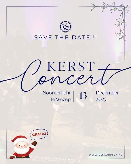 Zaterdag 13 december a.s. geeft het vLS Fanfare Orkest haar jaarlijkse kerstconcert! Het belooft een avond te worden met sfeervolle muziek, diverse (gast)solisten en samenzang. Locatie: Noorderlicht Wezep Toegang: gratis