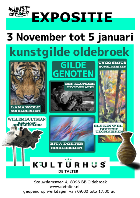 Vanaf 3 november tot 5 januari 2026 exposeren 6 gilde genoten van het Kunstgilde Oldebroek in De Talter in Oldebroek.