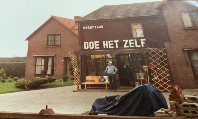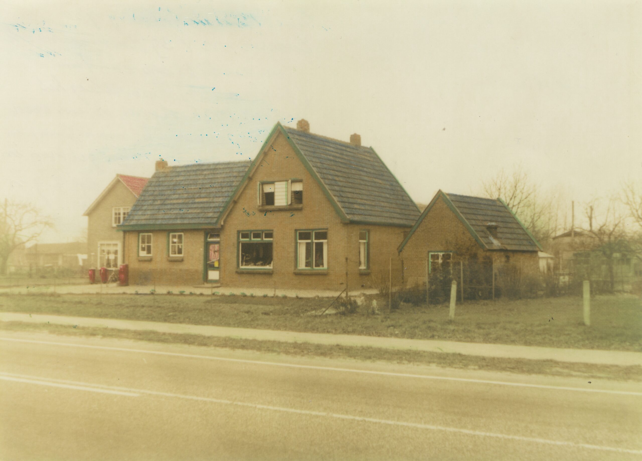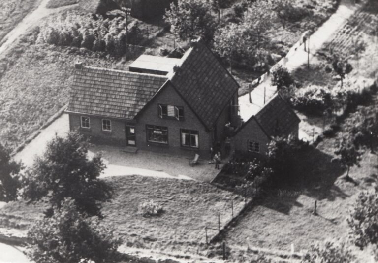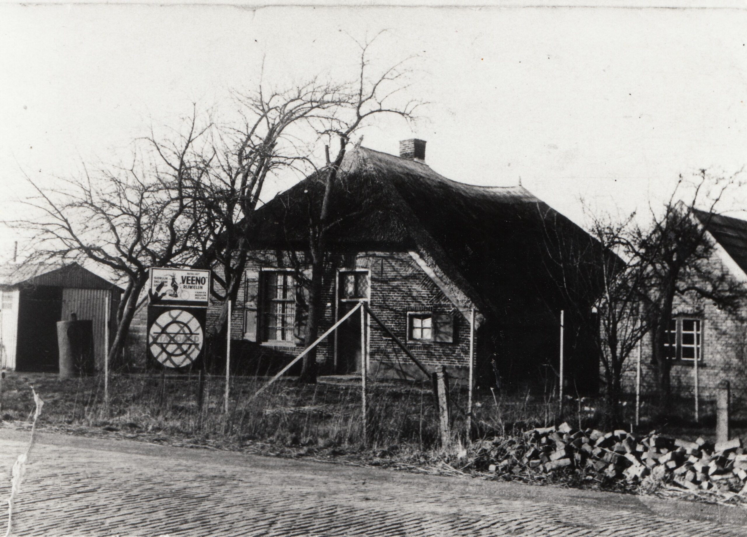 (Jaren later zal Jan hier een brommer kopen. De benzine haalt hij uit de pomp, die voor winkel staat. Ze verkopen dan ook vuurwerk. De voorraad wordt bewaard in wasketels met deksels erop, die op een schap boven de kachel in de werkplaats staan. De boel moet natuurlijk wel droog blijven….. Nog weer later komt er op deze plek een hobbyzaak tot aannemersbedrijf Bitterling zich er vestigt).