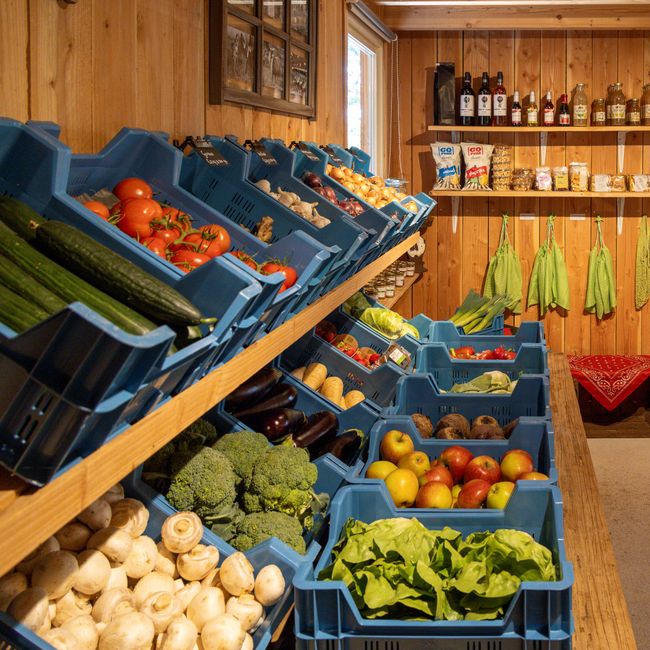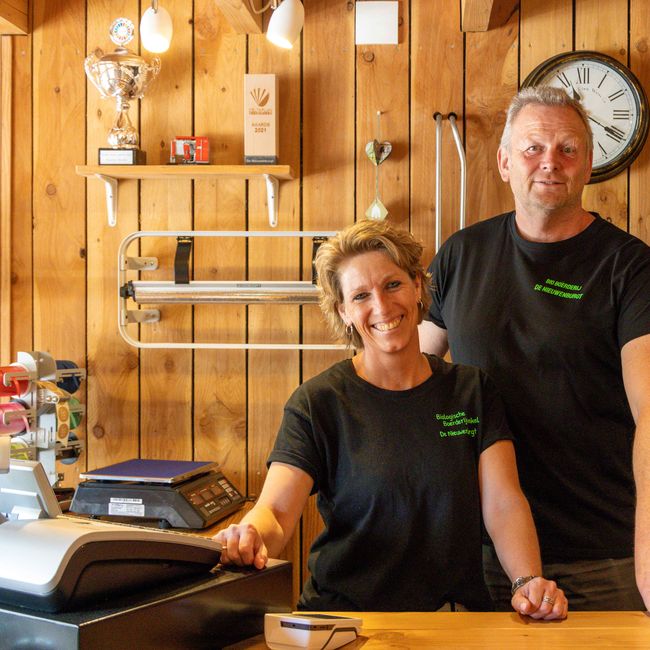 zorgen. Dit resulteert in lokale biologische producten en een mooi afwisselend landschap om van te kunnen genieten.De koeien eten voornamelijk kruidenrijk (kuil)gras. De kruiden zijn goed voor de gezondheid van de koeien. De stierkalveren blijven op de boerderij. In de zomer grazen ze in natuurgebieden.In de goed gesorteerde boerderijwinkel wordt vlees, meel van eigen graan, rauwe melk van de tap en kaas van eigen melk verkocht, aan gevuld met andere producten die zorgen voor een compleet winkelassortiment. Als de winkel geopend is dan ben je welkom om de boerderij te bekijken.