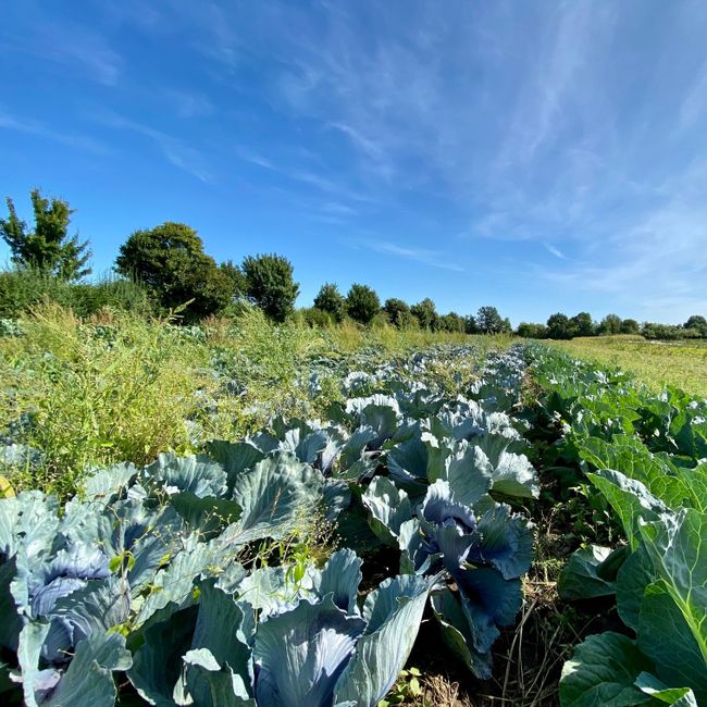 Op het grotere perceel verderop aan de Hogenenk worden sla, bonen, mais, pompoenen, uien en prei een grote verscheidenheid aan kolen en knolgewassen verbouwd. In de vrucht zit 2 jaar grasklaver als groenbemester opgenomen, zodat de grond om de beurt 2 jaar rust heeft. Hier staan ook verschillende bloemstroken en een rij hoogstamfruitbomen, en het perceel is omringd door hagen.
