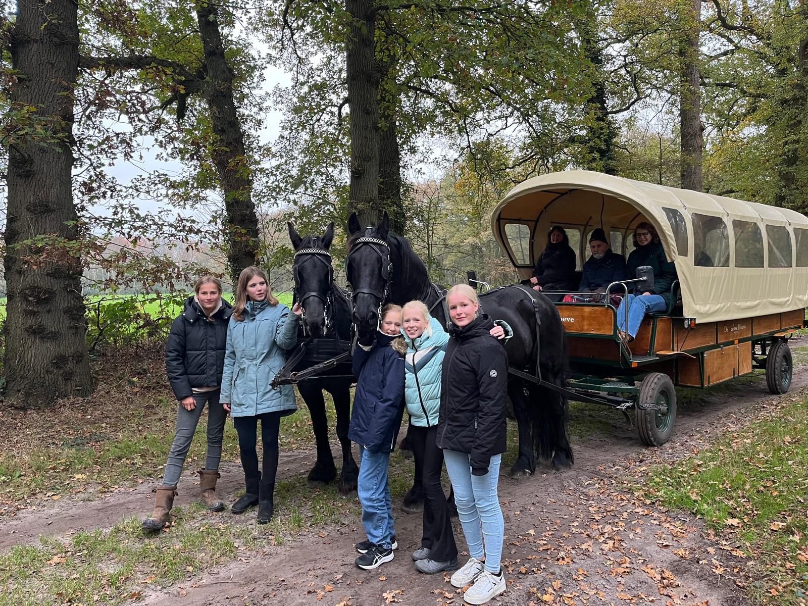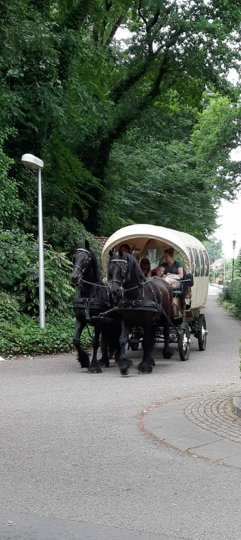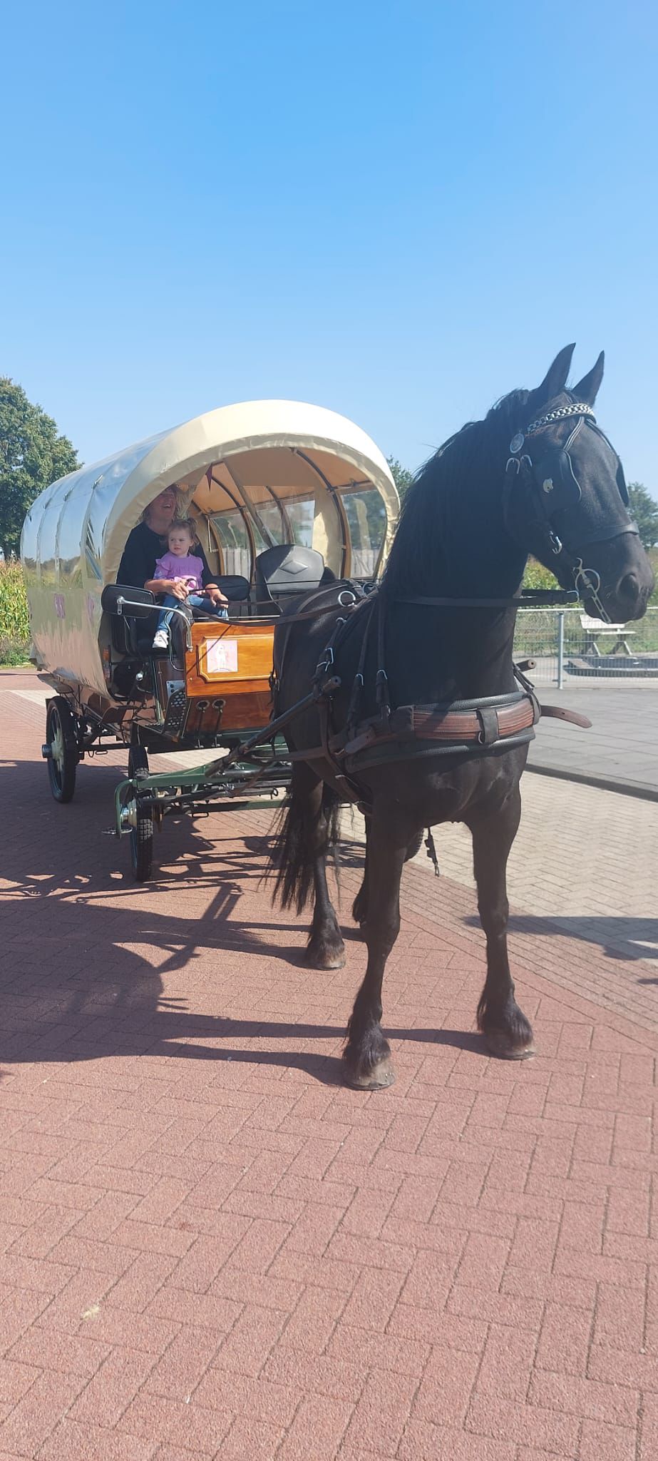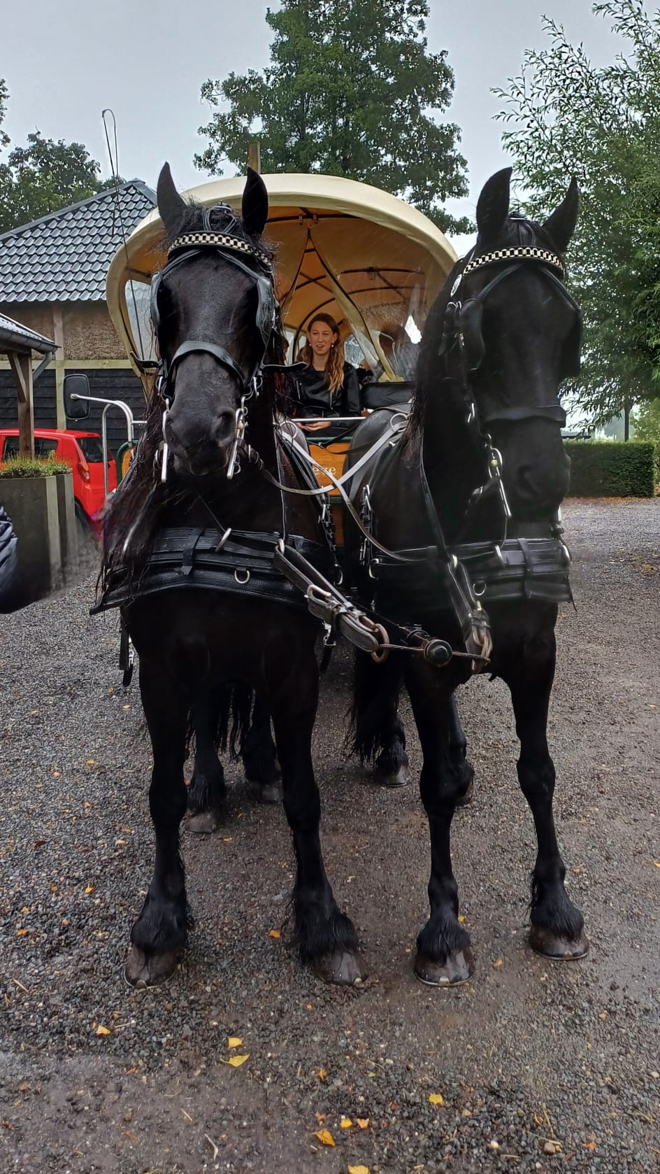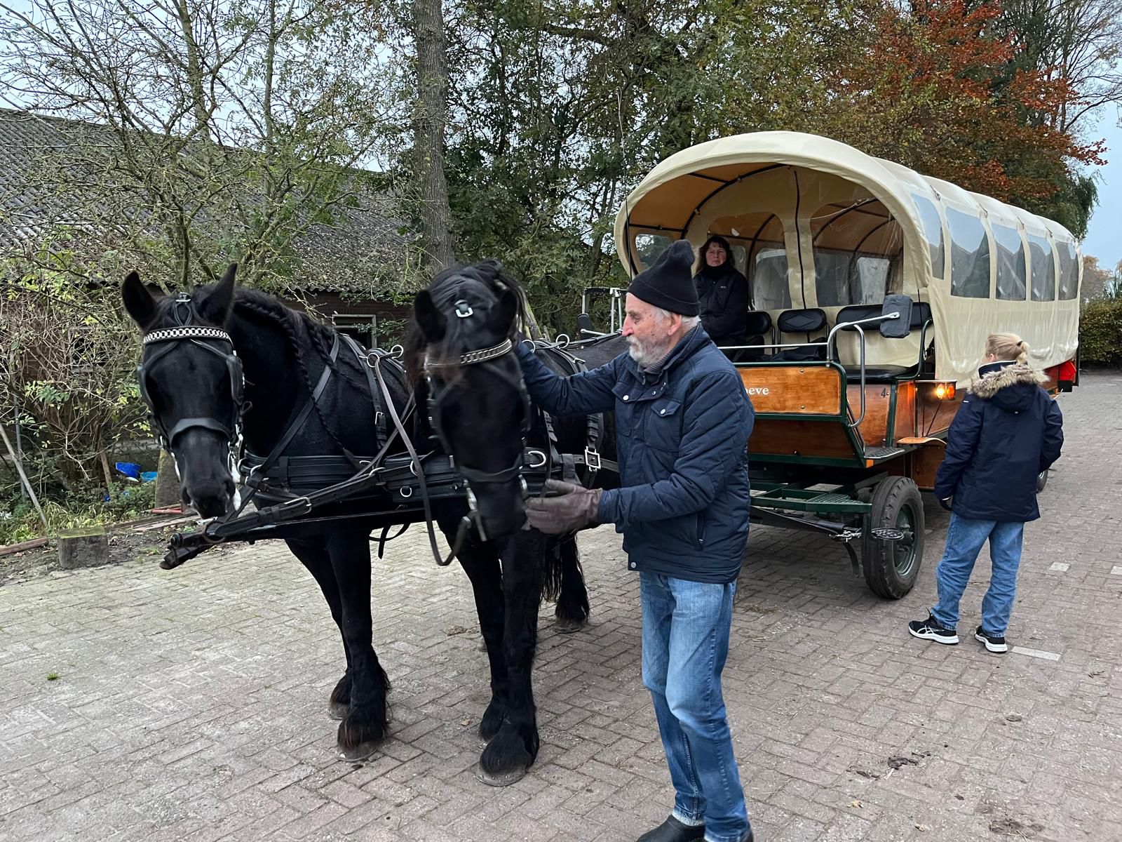 De tocht wordt getrokken door de Friese paarden Oedse en Femke, die met hun rustige kracht en sierlijke uitstraling zorgen voor een onvergetelijke ervaring.