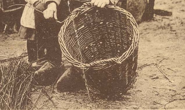 Jan en Marie zien meneer Van Dijk op een krukje voor het huis bezig met het maken van nieuwe manden. Iedereen kent hem als Willem de mandenmaker. Ze maken een praatje en bewonderen het handwerk. Knap hoe iemand zo manden kan vlechten van wilgentenen. Van Dijk maakt ze in alle soorten en maten. Thuis gebruikt moeder de manden om voorraad zoals aardappels in te bewaren maar ook voor het aardappels rapen en om groente en fruit in te leggen als ze in de moestuin heeft gewerkt. Eigenlijk is de mand onmisbaar op het erf en de boerderij.